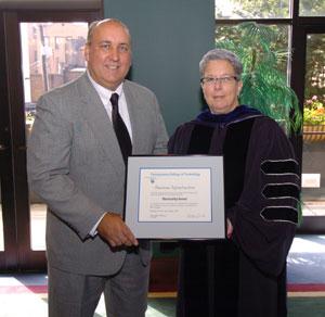 The award was presented during August commencement ceremonies at the Community Arts Center in Williamsport. The Mentorship Award, established in 2002, recognizes alumni and businesses that have made significant and/or ongoing contributions to the education and development of Penn College students.