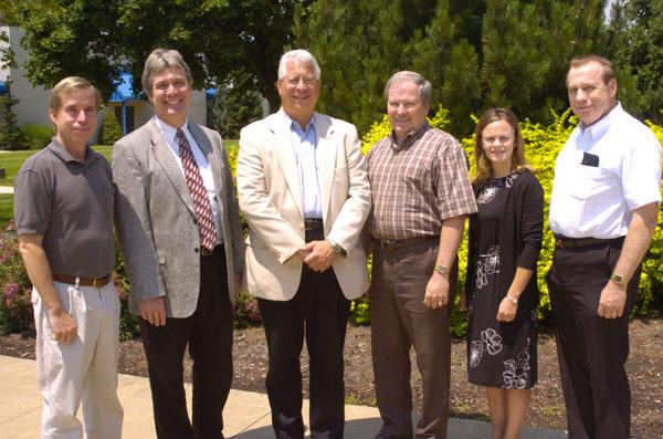Frank Sorg, recently named director of the Pennsylvania Plastics Initiative, visited Penn College on June 29 to tour its plastics facilities and get an overview of opportunities offered through the college's Workforce Development & Continuing Education and Plastics Manufacturing Center, its academic plastics department, and the regional Industrial Modernization Center. Penn College is among the partners in the Pennsylvania Plastics Initiative, which is funded by a $3.75 million U.S. Department of Labor grant. From left are Jim Shillenn, executive director and CEO of the Industrial Modernization Center; Tim Weston, assistant professor of plastics technology; Sorg; Larry L. Michael, executive director, workforce and economic development for Penn College; Rikki Riegner, program manager for the IMC; and Hank White, director of the PMC. (Also participating, but not pictured, was Lawrence J. Fryda, dean of industrial and engineering technologies.)