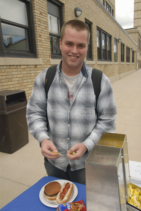 Community assistant Danielle M. Coakley grills hamburgers and hot dogs with Elliott J. Strickland, special assistant to the vice president for student affairs, during Wednesday's 'Vine Avenue Meet & Greet' Free food fuels neighborhood resident The first-ever "Vine Avenue Meet & Greet" was held Wednesday afternoon on the sidewalk behind the ACC. All Vine Avenue residents were invited to enjoy free food and meet Danielle M. Coakley, community assistant.(Photos by Phillip C. Warner, student writer-photographer)