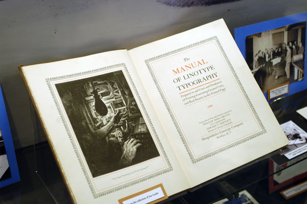A Williamsport Technical Institute catalog of type faces and historical photos are included in the commemorative exhibit A W.T.I. Press logo 'The Manual of Linotype Typography,' from the collection of Joseph Loehr, associate professor of English-mass communications To celebrate International Printing Week (Jan. 14-20), Archives & Special Collections has mounted a display of photos and tools to illustrate the early days of the college's printing program. The display, "Print: Essential, Evolving, Enduring," is located in the vestibule of the main entrance to the Madigan Library and will remain until the end of the spring semester.
