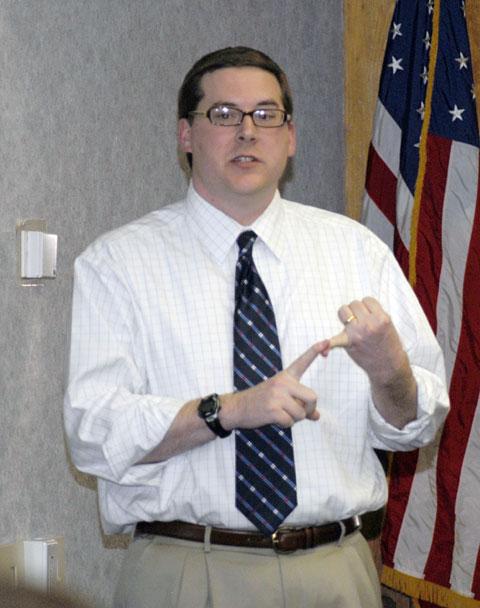 Elliott Strickland, special assistant to the vice president for student affairs Penn College Police Chief Chris E. MillerPenn College Police and Student Affairs were among those on hand Thursday to advise Penn College students on "How to Party Safely and Legally." The fun, informative program provided students with detailed information about how to host parties thatare safe and legal (and therefore within college policy). "We had 18 students attend and, from talking to them afterwards, I think they learned a great deal about how to have fun at college while staying safe and within the legal boundaries," said Elliott Strickland, special assistant to the vice president for student affairs. He was joined as a presenter in the PDC by police Chief Chris E. Miller and Alfredo F. Daniele, of Franco's Lounge and Music Club, a part-time instructor of food and hospitality/culinary arts at the college. ( Photos by Amanda M. Williamson, casual part-time student photographer)