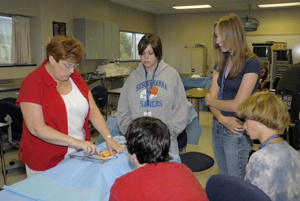 Forty high school students a capacity crowd attended Health Careers Camp on Penn College's campus June 13-15, during which they attended hands-on workshops in many of the School of Health Science's laboratories. On the last day of the event, they toured Susquehanna Health. The college and Susquehanna Health partner to help students learn more about careers in the health and medical field, including some for which Penn College prepares its graduates: dental hygiene, emergency medical services, fitness and lifetime sports, nursing, occupational therapy assistant, physician assistant, radiography, and surgical technology. (