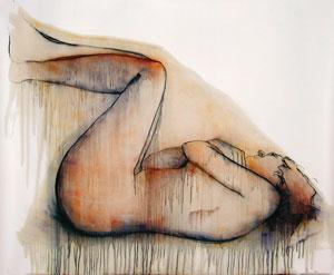 "The impulse for drawing comes from a gesture or an emotion that I see in a single body or in a couple of bodies intertwined with each other," Banister says. "The figures may suggest intimacy, peace, or a tender moment; they may suggest struggle, violence or bleak isolation. Whatever it is that they suggest is something that I feel, that I connect with in myself."