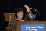Penn College held its Winter Commencement ceremonyDec. 22at the Community Arts Center in downtown Williamsport. The student speaker for the 11 a.m. ceremony was Travis J. Clawson, of Clarksburg, who received a bachelor's degree in computer information technology-Internetworking application development from the School of Business and Computer Technologies. Also speaking was Robert G. Bowers, a since-retired professor of mathematics who received the Veronica M. Muzic Master Teacher Award in May. During the ceremony, President Davie Jane Gilmour presented Alumni Citizenship/Humanitarian Awards and was joined by Birch B. Phillips Jr. of the college's Board of Directors as she conferred degrees and certificates upon more than 400 graduates.