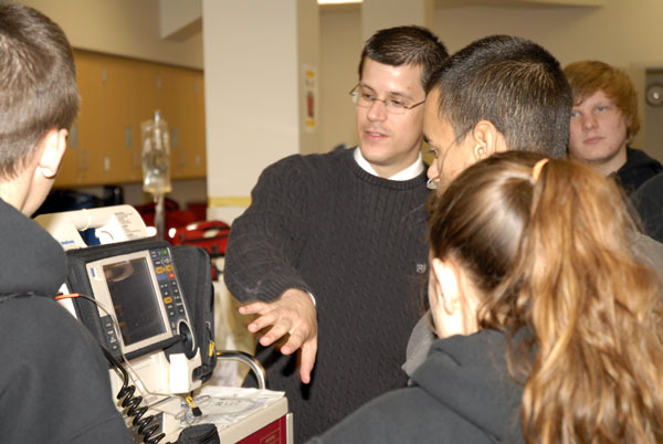 Students from SUN Area Career and Technology Center, in New Berlin, toured Penn College's paramedic lab on April 14, where they had the opportunity to work with the equipment Penn College paramedic students use. The high school students are enrolled in the center's police, corrections and security sciences program.