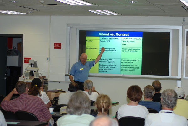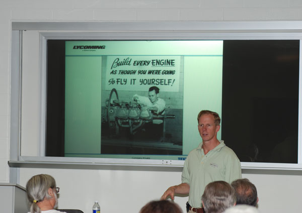 J.J. Greenaway A Beechcraft Bonanza was among the aircraft bringing seminar attendees Ian Walsh The Williamsport Regional Association of Pilots heldits annual drive-in/fly-in at Penn College's Lumley Aviation Center in Montoursville on Saturday. WRAP arranged for four speakers to address participants: Bob Miller, a member of the Niagara Frontier Aviation and Space Hall of Fame and an aviation publisher; Jennifer Hotsko, mission coordinator of Angel Flight East; J.J. Greenway, chief instructor for the Aircraft Owners and Pilots Association; and Ian Walsh, senior vice president and general manager of Lycoming Engines. More than 50 people listened to the presentations, two of which qualified as safety seminars in the Federal Aviation Administration's Wings pilot-proficiency program. Most attendees drove, sinceSaturday's weather was unstable. ( Photos and information provided by Thomas D. Inman, associate professor of avionics)