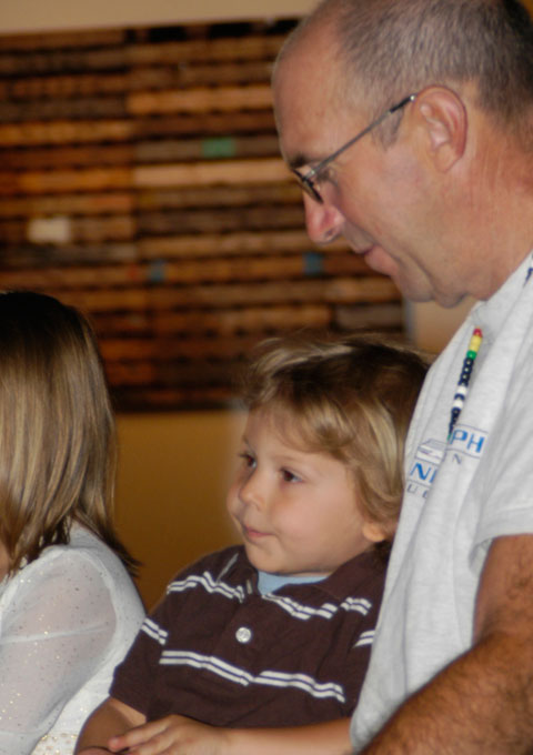 Joseph E. LeBlanc captivates his audience Enthralled in the gallery Joseph E. LeBlanc, instructor of physics, told the stories of "Momotaro, the Peach Boy" and "Ken'ichi and His Magic Pen" Tuesday in The Gallery at Penn College, in conjunction with the "Japan Juxtaposed: Traditional Textiles/Modern Images" exhibit that runs through Aug. 6. LeBlanc lived in Japan for several years.