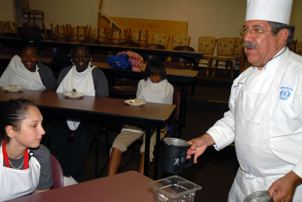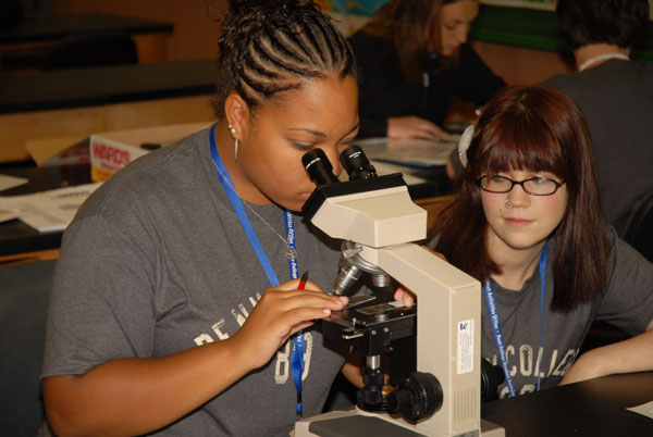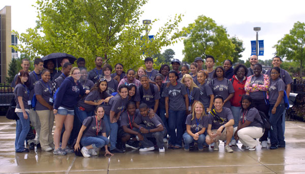 A girl tries her hand at cutting in the welding lab Visitors use forensic science to solve the 'Mystery at 123 Maple' Teens quickly gather outside the Madigan Library for a group shot, sandwiched between a cloudburst and lunch Participants learn how to make ice cream and sorbet with Chef Mike Ditchfield From Thursday to Saturday, Penn College hosted the 2008 C5 Conference, a group of approximately 40 teenagers and their chaperones from Boston. Students participated in a variety of activities on and off campus, including tours of the Schneebeli Earth Science Center and other college facilities, the Little League Baseball Complex, and the Community Arts Center. On main campus, the teens took part in a career assessment, visited with the Athletic Department, listened to a Student Life presentation, and participated in classroom and lab activities such as a murder mystery, iris-scanning and a welding workshop.