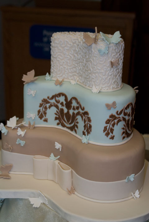 The grand-prize winner, by Erin Brown First-place design by Akacia Klick Hundreds of handmade pink roses decorated this rustic cake Painstaking lettering Participating students are joined by judges and instructor Sue Major, assistant professor of hospitality management/culinary arts Judging for the CalJava International Wedding Cake Competition was held Thursday morning in the PDC. Ten intricate cakes designed for the competition by students in an advanced cake decorating class were displayed the following day, attracting cash votes to determine the People's Choice Award. The funds raised through voting were given to the YWCA's Liberty House.