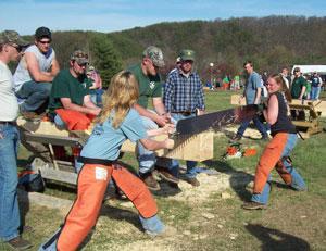 During the annual event, which was hosted April 18 on the Cumberland, Md., campus, Penn College students Katherine L. Huddleson, Sheffield, and Kelly J. Tome, Muncy, took first place in the women's crosscut saw competition. The college's other first-place award went to Derek J. Peterson, Corry, who won the throw-bag competition.