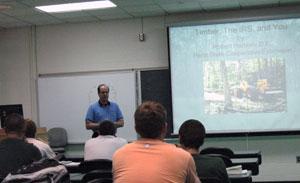 Robert Hansen, a Penn State Cooperative Extension forester, provided a training session, "Timber, the IRS & You," on Tuesday for students in Professor Dennis F. Ringling's Forest Land Management class.