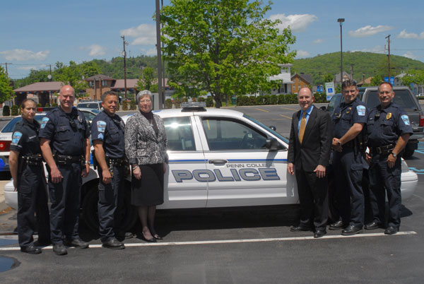 Penn College Police recognized by legislator Rep. Rick Mirabito, D-Williamsport, recently presented Penn College Policeofficers with certificates of appreciation in honor of National Police Week 2009. The 83rd District representative said the certificates were a way to recognize the service and dedication of Penn College Police to the campus community and its surrounding neighborhoods. From left are Ofiicers Jennifer J. Bowers, Michael J. Engel and David C. Pletz, college President Davie Jane Gilmour, Mirabito, Chief Chris E. Miller and Lt. David L. Mauck.