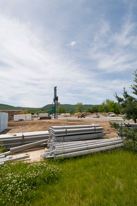 Stage X Building Programacross main campus, including the Dauphin Hall residential complex on the west end and renovations to the Hager Lifelong Education Center, Parkes Automotive Technology Center and Avco-Lycoming Metal Trades Center/Machining Technologies Center. Footers are being excavated and poured for new student housing, after whichthe mason will start foundation blocks, and the mechanical, electrical and plumbing prime contractors will begin "roughing in" underground piping. The ATC project continues with masonry, roofing and steel, and installation of stormwater and sanitary pipes. Contractors there also are installing electrical conduit and wire, ductwork and mechanical air-handling units, plumbing systems and fire-protection piping. At the LEC,a long-reach crane Wednesday set steel and removed rooftop units, and crews are completing steel-stud and drywall work. Demolition continuesin corridor areas and for the new elevator; contractors are installing heating, ventliation and air-conditioning equipment and ductwork; and electrical and fire-alarm wiring as well as rough plumbing and fire protection is ongoing. The MTC primarily is in a demolition phase, with all prime contractors completing their respective tasks. Foundations have been constructed on the north side for the welding shop's new dust-collection systems.