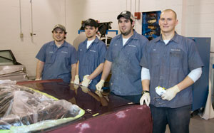 Allied with Klinger for the college's fledgling flight into high-profile restoration are Micah C. Kauffman, of Beavertown; Charles D. Peterson, of Cogan Station; Thomas G. Sylvester III, of Manalapan, N.J.; and Daniel J. Walsh, of Absecon, N.J. The first three are enrolled in the two-year collision repair technology major; Walsh graduated in December with an associate degree in collision repair technology and is working toward a bachelor's in automotive technology management.