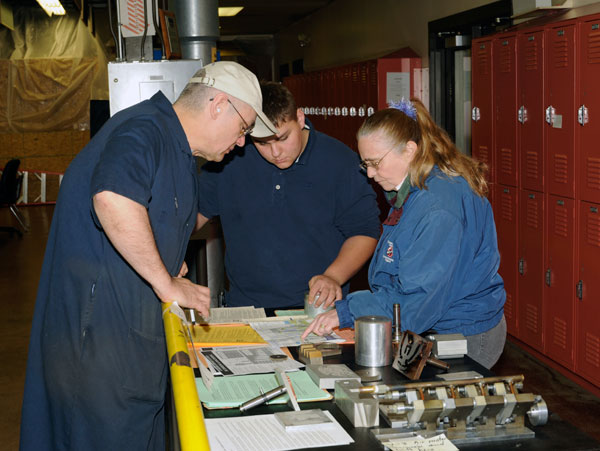 Tom Wilson, news bureau writer/editor; Scott D. Neuhard, assistant professor of electronics; and Cindy Davis Meixel, photo editor