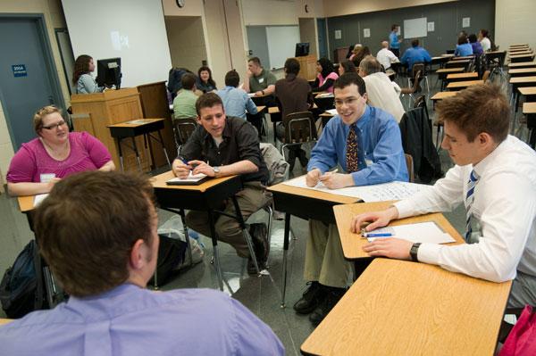 The Northeastern Pennsylvania Interprofessional Education Coalition, founded by The Commonwealth Medical College, hosted four collaborative seminars April 13 to promote teamwork and gain an understanding of various health professionals' roles in improving quality and safety in patient care. Together, students pursuing a variety of health-care professions collaborated on a case history in Penn's Inn. Sessions also were held at Marywood University, University of Scranton and Misericordia University. The students attending the Penn's Inn seminar hailed from Penn College, The Commonwealth Medical College, Lock Haven University and Wilkes University, and are studying to become nurses, paramedics, radiographers, pharmacists, physicians, occupational therapists and physician assistants, among others. The joint effort is one of the first in the country to introduce the concept of interprofessional education with students from various institutions and health-care disciplines.