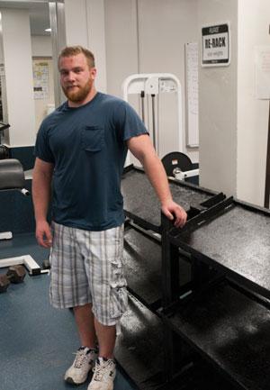 Matthew C. Kline, a welding and fabrication engineering technology student from Whitehall, produced new weight racks for the training rooms used by students majoring in physical fitness specialist and by students taking other fitness classes.