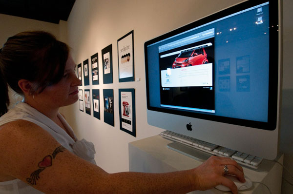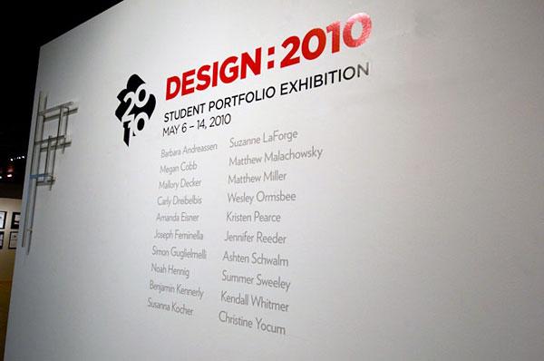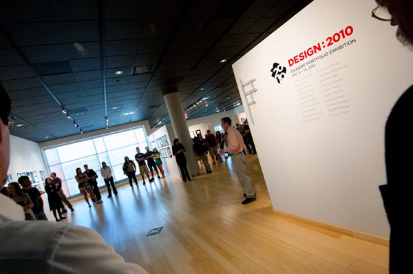 A roster of creativity Students and guests view exhibit On display through May 14 Student Suzanne M. La Forge shows her work on a computer Eugene M. McAvoy, assistant dean of integrated studies-programs, during the gallery talkThe Gallery at Penn College, on the third floor of Madigan Library, is hosting " Design: 2010 ," a student portfolio exhibition, through May 14. Twenty students are exhibiting a variety of work they created during their studies toward earning bachelor's degrees in graphic design. An opening reception, including a gallery talk, was held Thursday evening. Gallery hours are 1-4 p.m. Saturday and Sunday, 2-8 p.m. Tuesday and Thursday, and 11 a.m.-5 p.m. Wednesday and Friday. All exhibits are free and open to the public. Watch the Summer 2010 issue of One College Avenue for more about the exhibit. Photos by Cindy Davis Meixel, photo editor