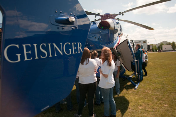 Exploring possibilities A closer look Campers gather for a group mementoHigh schoolers visiting campus for the annual EMT-Paramedic Camp sponsored by Penn College and the state Department of Health explored Geisinger's newest Life Flight helicopter, an $8 million piece of equipment. The camp offers students in grades 9-12 (who have no prior experience) hands-on workshops in basic first aid, advanced life support and rescue operations, basic first aid and CPR certification, an opportunity to learn in state-of-the-art paramedic and rescue facilities, and opportunities to network with college students and faculty, as well as Susquehanna Health and Geisinger Life Flight paramedics.