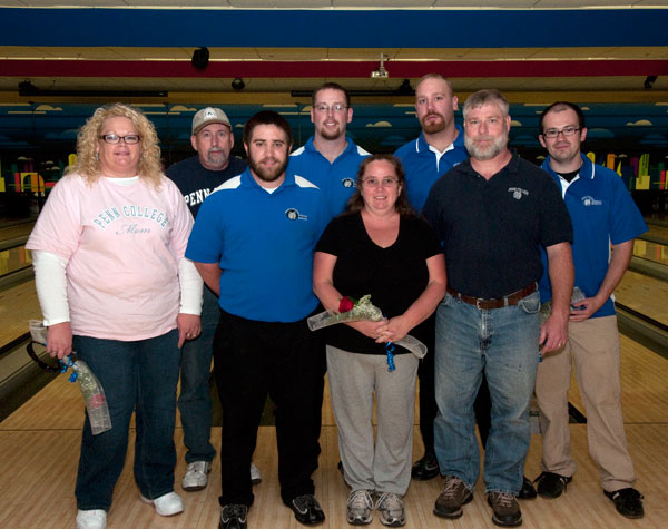 The Penn College bowling team paid tribute to its four graduating seniors Tuesday during the squad's season home opener at Faxon Bowling Lanes. Paul Bouchard, Wesley Moyer, Travis Rupert and Aaron Smith were recognized prior to the start of the meet in the packed Loyalsock Township venue. Head coach Deb Vincenzes honored the four for their commitment to the team, as well as for their stellar bowling records in their careers at Penn College. "It has been a privilege to have known all of the graduating seniors and I would personally like to wish them the best life has to offer," she said. Bouchard is a technology management major from Montoursville; and Moyer is a web and applications technology student from Fleetwood. A nursing major, Rupert hails from Lock Haven; while Smith is an automotive technology: Honda PACT emphasis major from Waynesboro. Moyer has participated in two state tournaments, and was part of the state championship team in 2008 and the second-place team in 2009. Rupert and Smith (who finished second in singles last year) also were part of that second-place team.