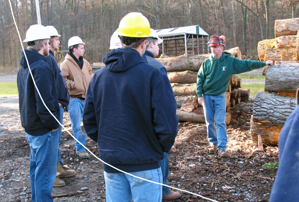 Forestry instructor Jack Fisher provided a thorough tour of the mill, lumber yard and dry kiln for the students. He discussed topics that are emphasized in his Forest Products class that relate to the construction industry, such as hardwood lumber grades, lumber manufacturing (sawing) and kiln drying.