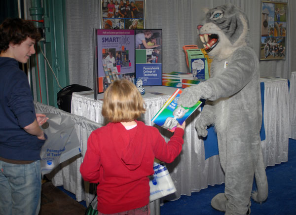 In a scene repeated many, many times throughout the day, the Penn College Wildcat finds a photogenic fan.