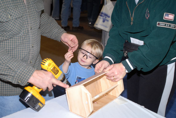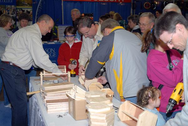 A popular toolbox-construction display requires an assembly-line approach to handle the crowd.