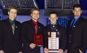 Comprising the championship team, coached by Barney A. Kahn, instructor of building construction technology, are Thomas M. Whitehouse, of Bethlehem; and Brandt D. Hey, Brent K. Hey and Shane A. Beckner, all of Chambersburg. Whitehouse and the Hey brothers are enrolled in residential construction technology and management: building construction technology concentration; Beckner is majoring in building science and sustainable design: architectural technology concentration.