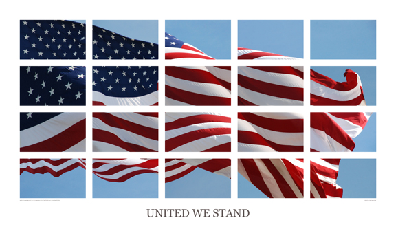 Among those inspired by the call was artist Fred Gilmour, a former member of the Penn College faculty, who drew upon an archive of his photographs to create a mosaic titled "United We Stand." Channeling Andy Warhol and comprising 20 separate images of the flag in full flutter, Gilmour's rendition was donated to the Williamsport-Lycoming County Flag Committee as a fundraiser toward the endowment.