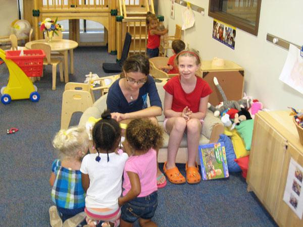 Samia Campbell, left, and Aria Meixel attract an attentive crowd Children gather 'round the table to hear Laura Tanner Katie Samsel reads a Disney book to the childrenDuring the waning days of summer Camp ESCAPE, four participants volunteered to read to youngsters at the Children's Learning Center. Campers also took part in a baking project and toured the facility, which recently was moved to the Hager Lifelong Education Center. The tour gave past Children's Learning Center students an opportunity to see the new surroundings and catch up with former teachers. Camp director Jeremy R. Bottorf, who also supplied the photos above, sent out a big "Thank you" to Karen Woland Payne, director of the learning center, for allowing campers to visit, cook and read to children there.