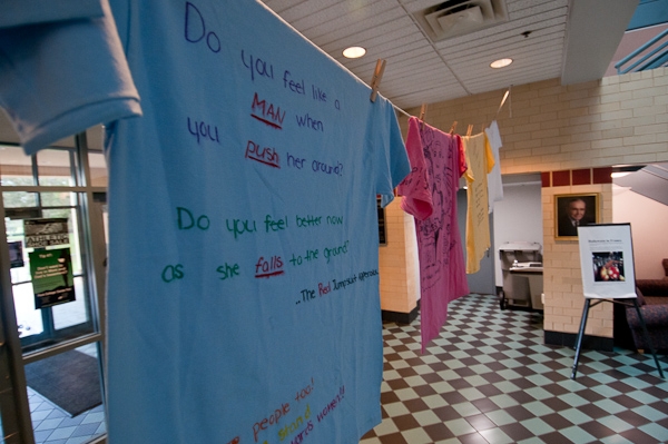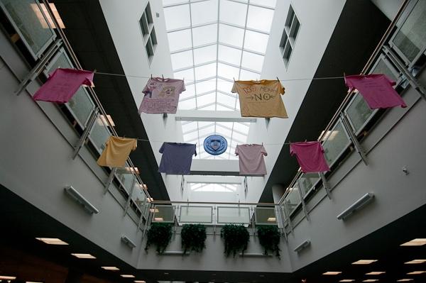 The Clothesline Project, in which decorated T-shirts are publicly exhibited in silent witness to the enduring scourge of violence against women, has returned to Penn College. Among the Domestic Violence Awareness activities sponsored by Healthy Wildcats, the project is on display in The Madigan Library and the Bush Campus Center.