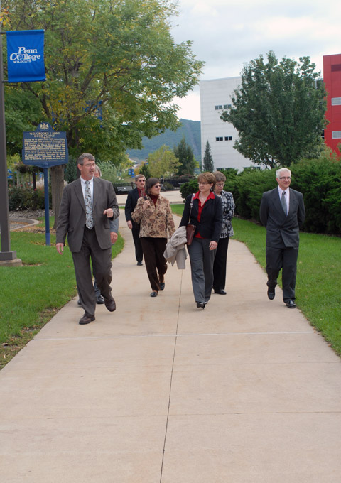 The executive board of The Pennsylvania State University Faculty Senate visited Penn College on Tuesday, the seventh of its eight planned excursions this semester. The senate, which represents all Penn State faculty, seeks ways to improve communication and collaborative decision-making across the university. Making the trip were Daniel R. Hagen, senate chair; Larry C. Backer, chair-elect; Pamela P. Hufnagel, secretary; Susan C. Youtz, executive director; and Karen L. Duncan, senior associate registrar. The group met with college administrators, Governance officials, faculty representatives and student leaders; toured Madigan Library, the Parkes Automotive Technologies Center and the Avco-Lycoming Metal Trades Center; and had lunch in Le Jeune Chef Restaurant. Each fall, officers travel to about one-third of the campuses in the Penn State system. They visited Altoona, Fayette, Worthington Scranton, Wilkes-Barre, Hazleton and Schuylkill in September, and will travel to the College of Medicine at Hershey in November.