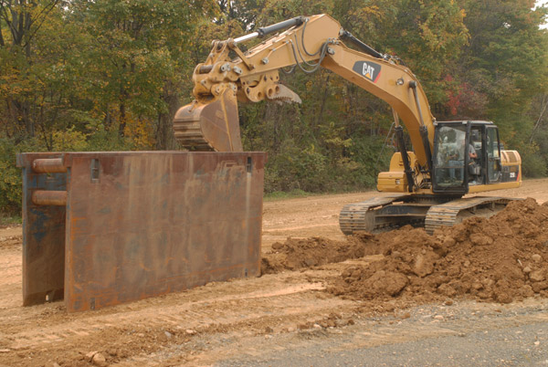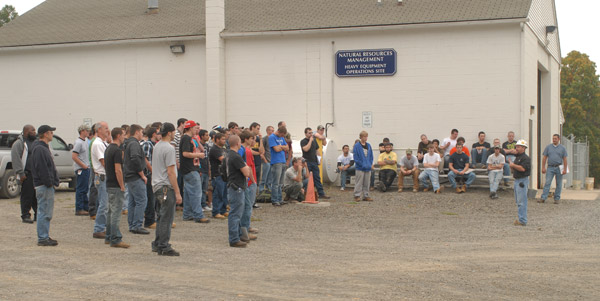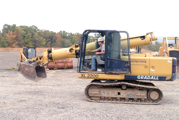 In a beneficial trip over the mountain (and across academic borders), about 70 freshmen from Penn College's School of Construction and Design Technologies traveled to the School of Natural Resources Management heavy equipment training ground Tuesday for an afternoon of insight. Students in site-preparation and safety classes joined by construction faculty members Garret L. Graff, Harry W. Hintz Jr., Peter Kruppenbacher and Thomas J. Mulfinger got a close-up look at the multi-ton machinery they'll encounter on the job. Heavy construction equipment technology students demonstrated a hydraulic excavator, track loader and other machinery from the campus' earth-moving fleet, as Budd L. Greevy, instructor of diesel equipment technology, explained the job-site advantages of each. Along with discussing those benefits, he stressed the need for safety when working on or around the massive, unforgiving vehicles. "You turn them off, you turn them on. These things have no conscience," he said, noting that human precaution is the most reliable defense against workplace tragedy. "They don't think, they don't cry, they don't grieve. I can't be more blunt than that." Greevy and his students also demonstrated use of a "trench box," which prevents the collapse of dirt walls onto excavation workers. The visit to the operations site was the latest in a series of beyond-the-classroom exercises planned by construction faculty. Upcoming classes will feature fire-safety and CPR instruction, Graff and Kruppenbacher said.
