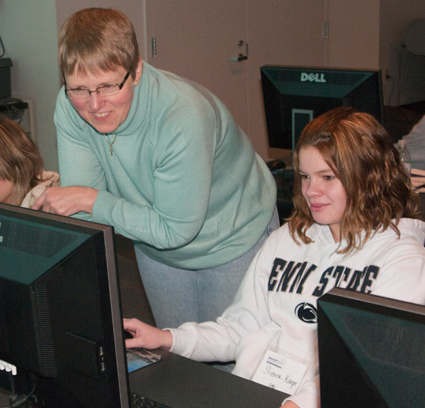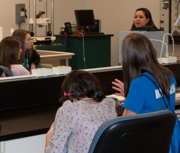 SMART Girls learn about injection molding during a 'Plastics and You!' workshop Girls test the patch cables they built in 'Time to Build the Networks of the 21st Century' in an electronics and computer engineering technology lab Francelys A. Medina, part-time metallurgy faculty, talks about materials testing in the college's metallurgy lab Katherine A. Walker, assistant professor of drafting and computer-aided design, helps a participant with a step in the design of a holiday ornament Young women in grades six through eight took part in SMART Girls workshops at Penn College on Tuesday, immersing themselves in educational (and fun) activities to reinforce the role that math and science play in technology-based professions. Entering its 11th year, and nowmanaged by the college's Outreach for K-12 office, SMART (Science and Math Applications in Real-world Technologies) Girls is designed to expose participants to career possibilities in emerging technologies.