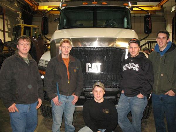 From left are students Scott Sipe II, Dillon P. Miller, Luke C. Laughlin, Kevin N. Seger and Landis M. Watts New vehicle, familiar logo Students eye the CT660 with David C. Johnson, instructor of diesel equipment technology Cleveland Brothers CAT's Randy Fetterolf joins students (from left) Sean L. Diehl, Jacob R. Holderman and Matthew B. Fischer Students in Penn College's heavy construction equipment technology and diesel technology majors this week got a close look at the newest vehicle in the heavy-duty fleet of a long-standing corporate partner. Cleveland Brothers CAT brought the CT660 vocational truck, an on-highway vehicle unveiled last year by Caterpillar, to the Schneebeli Earth Science Center for students in the School of Natural Resources Management. Representinga longtime partner in the Caterpillar Excellence Fund, which regularly provides equipment, scholarships and technical support to the school, were Doug Wetzel, on-highway trucks, partsand service sales representative; Nate Chase, technical communicator; and Randy Fetterfolf, corporate recruiter . Photos by Carol A. Lugg, coordinator of matriculation and retention, School of Natural Resources Management