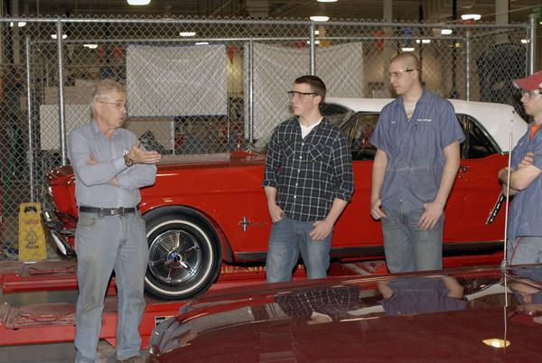 junior award in regional competition at Hershey, were "detail" and "documentation." Buckeye's restoration of a 1964 pre-production Mustang which the Millers brought along to Penn College involved 700 hours of research (including an eight-hour visit to the Henry Ford Museum), 2,000 photos and countless phone calls on its way to winning Bestof Class at a show in Hilton Head, S.C. "Let the car tell you its story," said John Miller, who, with his son, demonstrated a number of processes that they use in their shop: "the little things that make you that much better than the competition."