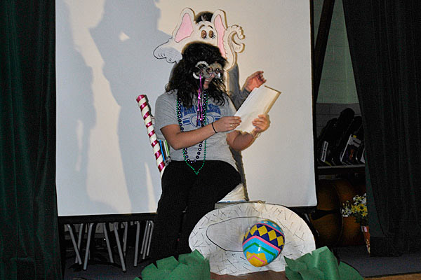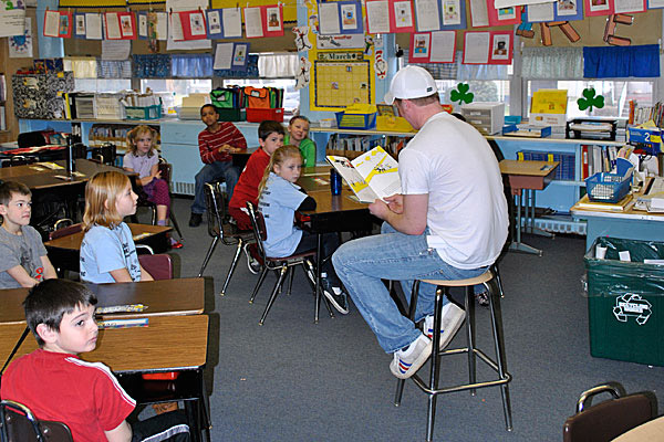 The Penn College Student Athlete Advisory Committee participated in Reading with the Wildcats at Sheridan Elementary School on Thursday. Nine student-athletes and three Athletics Department representatives traveled to the school, part of the Williamsport Area School District, for the annual Read Across America observance. The student-athletes performed "Horton Hatches the Egg" by Dr. Seuss for the entire school, then individually read stories to classrooms to promote reading. The Wildcats have participated in the event for the past four years. As a sign of appreciation, Sheridan students presented the college with a hand-decorated flower pot. Students participating in the event were: Brittany M. Basalla, Athletics student worker; Cora R. Bova and Lacy M. Lose, softball; Cody E. Buterbaugh, Kevin W. Fink and Garrett A. Hornung, baseball; Kelly R. Hebert, women's volleyball; and Clint Hinton, Ashlee L. Mull and Glen R. Thomas, archery.