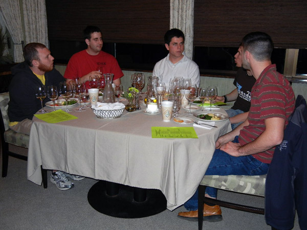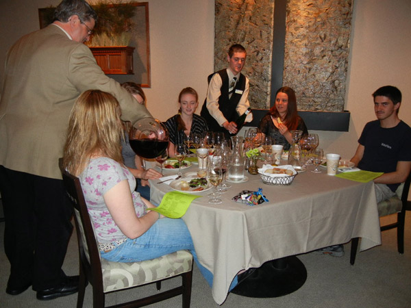 Chef Paul E. Mach, left, and Brandon R. Griess, a culinary arts technology student from New Tripoli, serve patrons A varied selection awaits wine-tasters Students socialize in Le Jeune ChefFaculty, staff and students (of legal age) joined Chef Paul E. Mach, assistant professor of hospitality management/culinary arts, for the Wine Tasting Short Course held Tuesday evening in Le Jeune Chef Restaurant. "The audience learned about several different wines and how different foods can enhance or diminish the taste of the wines," said Michael J. Hersh, assistant director of student activities for programming and operations (who also supplied the photos). "Several students in attendance had never been in Le Jeune Chef before, so, for them, this event was especially insightful."