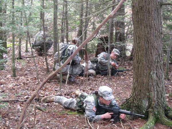 The Bison Battalion (the Bucknell University-based ROTC program comprising Bucknell, Bloomsburg and Susquehanna universities, Penn College and Lycoming College) recently completed a two-day field training exercise, the purpose of which was to prepare cadets for their careers as Army officers. Junior and sophomore cadets participated in squad and platoon battlefield scenarios, while freshman cadets conducted preparatory land-navigation training and instructional classes. Organizers said the cadets faced the elements, especially the weekend's rain and cold, by maintaining high morale and adhering to the Army values that every soldier keeps close to his heart. The Bison Battalion prides itself on its ability to provide high-quality training to cadets to prepare them for successful careers in the Army, they said, while maintaining a positive atmosphere with highly motivated instructors that reflects on cadets. "We are helping to prepare cadets to step into the shoes of great army officers, and lead our troops well," said Cadet Mast, the event's officer in charge.