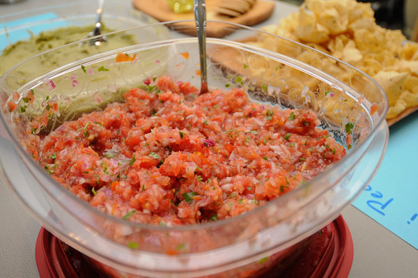 Flanked by D. Robert Cooley, assistant professor of anthropology/environmental science, left, and Curt E. Vander Vere, assistant professor of mathematics, right, are the student presenters, from left: Caitlin J. Banks, of Dauphin, applied human services; Lacee Hess, Ulysses, pre-applied health studies-occupational therapy; Brian J. Borror, Dover, computer aided product design; Patrick B. Ranft, Ringwood, N.J., residential construction technology and management: building construction technology concentration; and Mark J. Stabley, Williamsport, building science and sustainable design: architectural technology concentration Interested spectators fill the CC TV Lounge to hear Ranft's illuminating talk on the Mayan and the Solar Zenith Cooley's salsa, guacamole and tortilla chips were a spicy addition to the gathering Stabley shows how the Mayans used rope to orient their architectural structures With authenticity, credibility and visual aids, Vander Vere explains why the world will NOT end on Dec. 21Students in MTH 156 (Mathematics in Non-European Cultures) presented their study abroad projects in the Bush Campus Center TV Lounge this past week. The group traveled to Mexico's Yucatan Peninsula and studied the Mayan civilization. The Penn College community is welcome to sign up for next year's overland adventure through the rain forests and lowlands of the Mayan world.