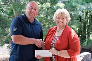 The check for nearly $10,000 represents the proceeds from a golf outing English coordinates at the Tyoga Country Club to raise funds for the scholarship. Various individuals and business groups in the natural gas industry participated as sponsors and players.