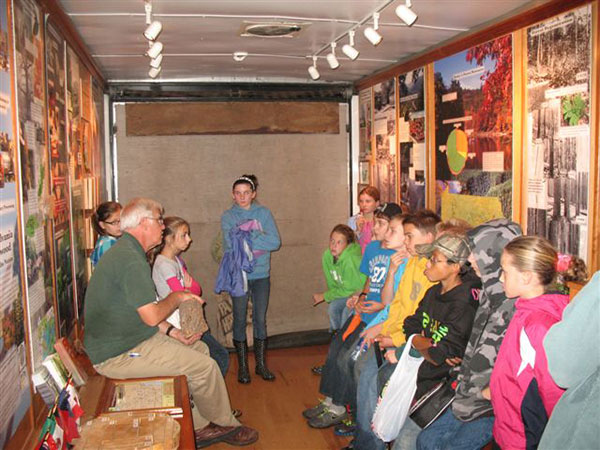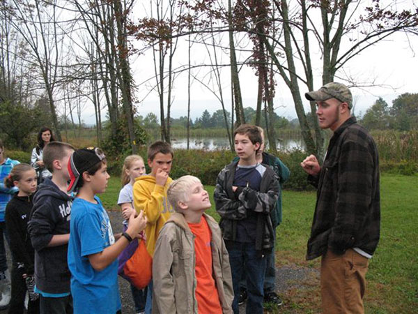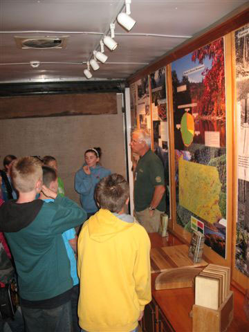 Nearly 50 secondary students, teachers and chaperones visited Penn College's Schneebeli Earth Science Center on Wednesday, enjoying a day outdoors in spite of the rain. High school students from Athens, as well as middle schoolers from Walnut Street Christian School and the Pennsylvania Cyber Charter School, enjoyed a variety of activities that included a look inside the state Department of Agriculture's traveling WoodMobile exhibit. Students toured hiking trails and forestry lab areas, led by Dr. Dennis F. Ringling, forestry professor, and forest technology students Brandon J. Novakoski, of Nanticoke, and Nathan C. Pysher, of Bangor. The middle school group was also treated to a wildlife presentation by forestry instructor Jack E. Fisher at the ESC pavilion.Photos by Carol A. Lugg, coordinator of matriculation and retention, School of Natural Resources Management