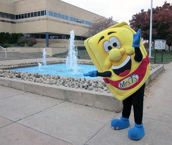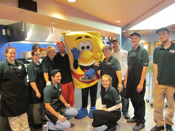 In belated observance of National Pierogy Day (Oct.8, but celebrated at Penn College on Thursday to accommodate an opportune visitor), several Dining Services units featured assorted variations of the pasta-and-potato favorite. The Keystone Dining Room, CC Commons and Capitol Eatery included such fare as Buffalo Pierogies, Bruschetta Pierogies, Chicken Pierogisan and "the ever-popular Pierogi Loaf." Pierogy Man traveled to campus courtesy of Mrs. T's, a Pennsylvania-based business marking its 60th anniversary this year. In a promotion to help stop hunger, the Shenandoah pierogy-maker made a donation to a local food bank based on Dining Services' purchase of its products.Photos provided by Dining Services