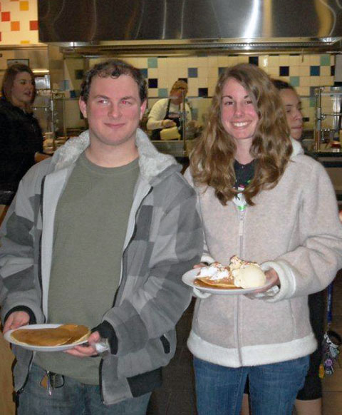 Student Activities and Dining Services hosted another successful Midnight Breakfast on Thursday night at the Capitol Eatery. Students were treated to free pancakes, ice cream, massages and entertainment by John Rush, the Human iPod.Photos by Amy S. Lingg, Dining Services marketing assistant, and Matthew A. Wagner, student liaison