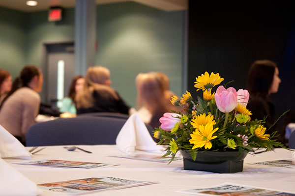The eighth annual Women in Sports Day was held Sunday in Penn's Inn, hosting 65 current and prospective Penn College student-athletes, coaches and guests. The featured speaker was Kelsey A. Coppersmith, a four-year member of the Wildcat Dance Team, who graduated last May with a physical fitness specialist degree. During her time on campus, Coppersmith served on the Student Athlete Advisory Committee, represented the dance team in a number of public performances, was a volunteer at Open House and other college events, and participated in a number of community-service projects. During her presentation, she talked about the demands of being a female student-athlete and offered advice on how to balance those competing responsibilities. Volleyball student-athletes Kelly R. Hebert, an applied health studies: radiography concentration major from Wellsboro, and Courtney L. Gernert, a graphic design major from Palmyra, gave the welcome; their coach, Bambi A. Hawkins, served as the emcee. Head coaches from each of the women’s sports spoke about their teams and accomplishments over the past seasons, as well as their prospects for the upcoming year.Photos by Marc T. Kaylor, student photographer