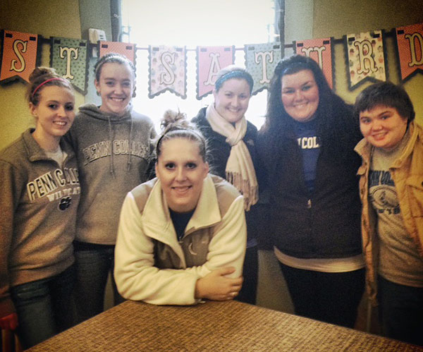 Seven members of the Penn College softball team, representing the Student Athlete Advisory Committee, recently participated in a community-service project at Christ Episcopal Church in Williamsport. The girls helped active church members with their monthly soup kitchen and assisted in food preparation, setup, serving and cleanup. From left are Katie L. Kratzer, of Selinsgrove, a pre-radiography major; Christina J. Mignot, Hughesville, advertising art; Delaney W. Blubaugh, Waynesboro, baking and pastry arts; Stephanie N. Keifrider, Douglassville, legal assistant/paralegal; Lacy M. Lose, Avis, applied health studies: occupational therapy assistant concentration; and Lindsey R. Anderson, Heber Springs, Ark., welding and fabrication engineering technology. (Samantha D. Hill, a general studies major from Montgomery, is not pictured.) "This was such a rewarding experience," Lose said. "This is definitely something we look forward to doing in the future."Photo provided by Christ Episcopal Church
