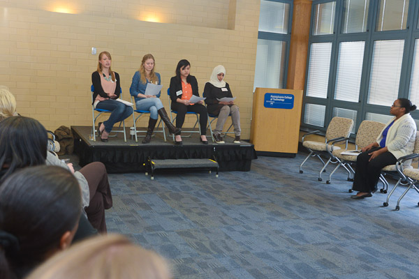 International students from Penn College and Lycoming College shared their experiences during a Global Women's Panel discussion held Thursday in the Bush Campus Center. The discussion was coordinated by Malinda Love, assistant director of student activities for diversity and cultural life at Penn College (seated at far right in the accompanying photo), and Jean Wool, executive assistant for student affairs and Multicultural Awareness Group adviser at Lycoming College.