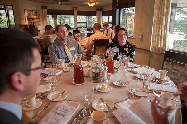 Offering encouragement at Tuesday's event, the latest in a series of dinners sponsored by the Alumni Relations and Career Services offices, were Annmarie Phillips, a perennial supporter and member of the Penn College Foundation Board of Directors; George E. Logue III, a 2010 graduate in culinary arts and systems; and Daniel R. Bennett, the college's manager of information technology security.