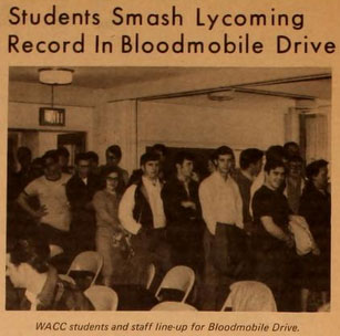 The latest Red Cross Bloodmobile at Penn College collected 229 units over two days, a gratifying amount that still did not top the 320 pints donated by Williamsport Area Community College students and employees on March 5, 1969. As reported in the Spotlight campus newspaper, an open challenge to students was initiated by the Service and Operation of Heavy Construction Equipment organization, along with posters advertising the Bloodmobile. Nearly 400 students and faculty responded to the challenge, and, while 53 were rejected as donors, the principle behind the effort remained. WACC united for a cause in the Student Government-sponsored blood drive, surpassing expectations and topping the Lycoming County record by 13 pints. "This should demonstrate to us that much can be accomplished in our society if we care enough to direct our efforts to the good things we believe in," college President Kenneth E. Carl wrote in a published letter to students. "I'm confident that society will benefit from the contributions that you will make in the future."