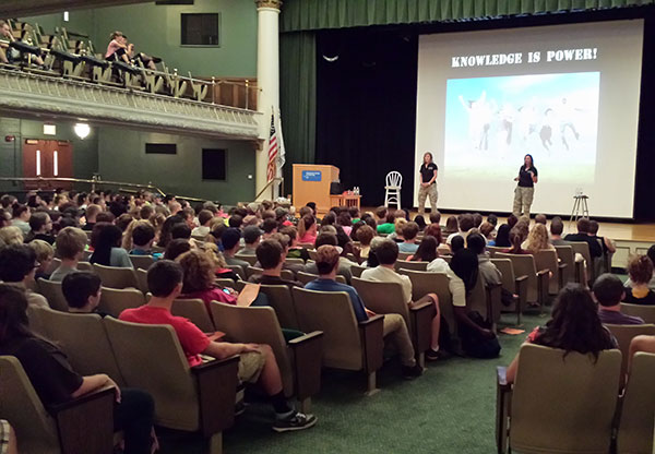 "Sex Ed Boot Camp," an educational and entertaining program that has become a fixture with each new Penn College academic year, returned to campus Wednesday night. About 400 students attended the Klump Academic Center presentation by authors Joni Frater and Esther Lastique, who empowered students to make safe, healthy and respectful decisions regarding intimacy.Photos provided by College Health Services